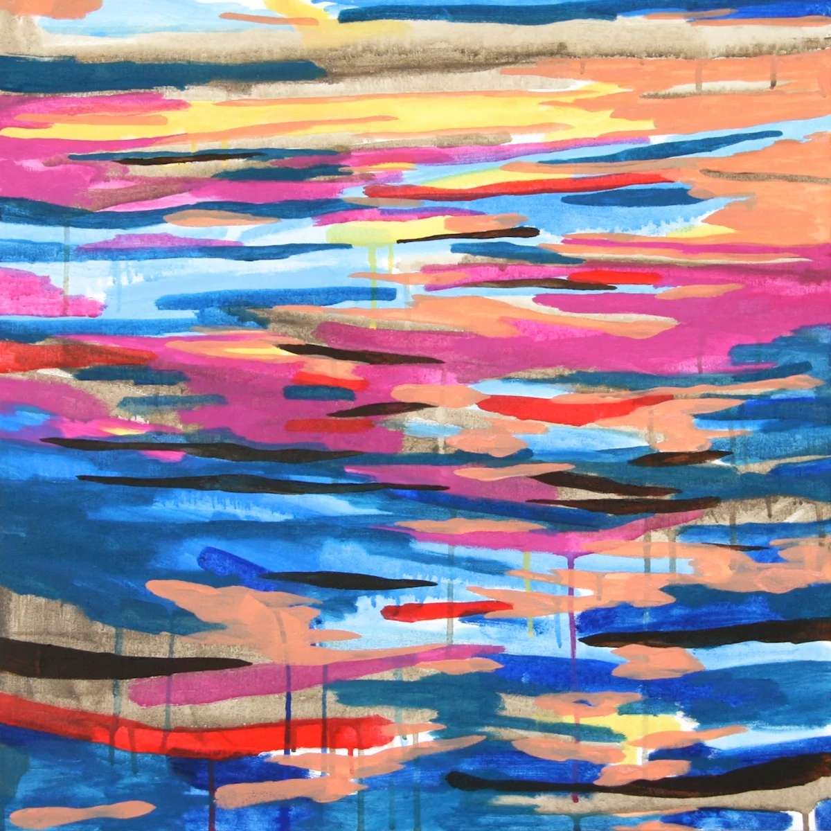 "Kelly Johnston’s atmospheric paintings consist of deceptively simple line work and colorful undertones that resemble sky and ocean settings and patterns. Kelly’s paintings, however, do not limit the viewer to reflect on a static, immovable image of a landscape, but invites new perspectives to her work with each viewing. The result is an almost unlimited new and fresh experience with her paintings each time one sees them. We’re pleased to present them."