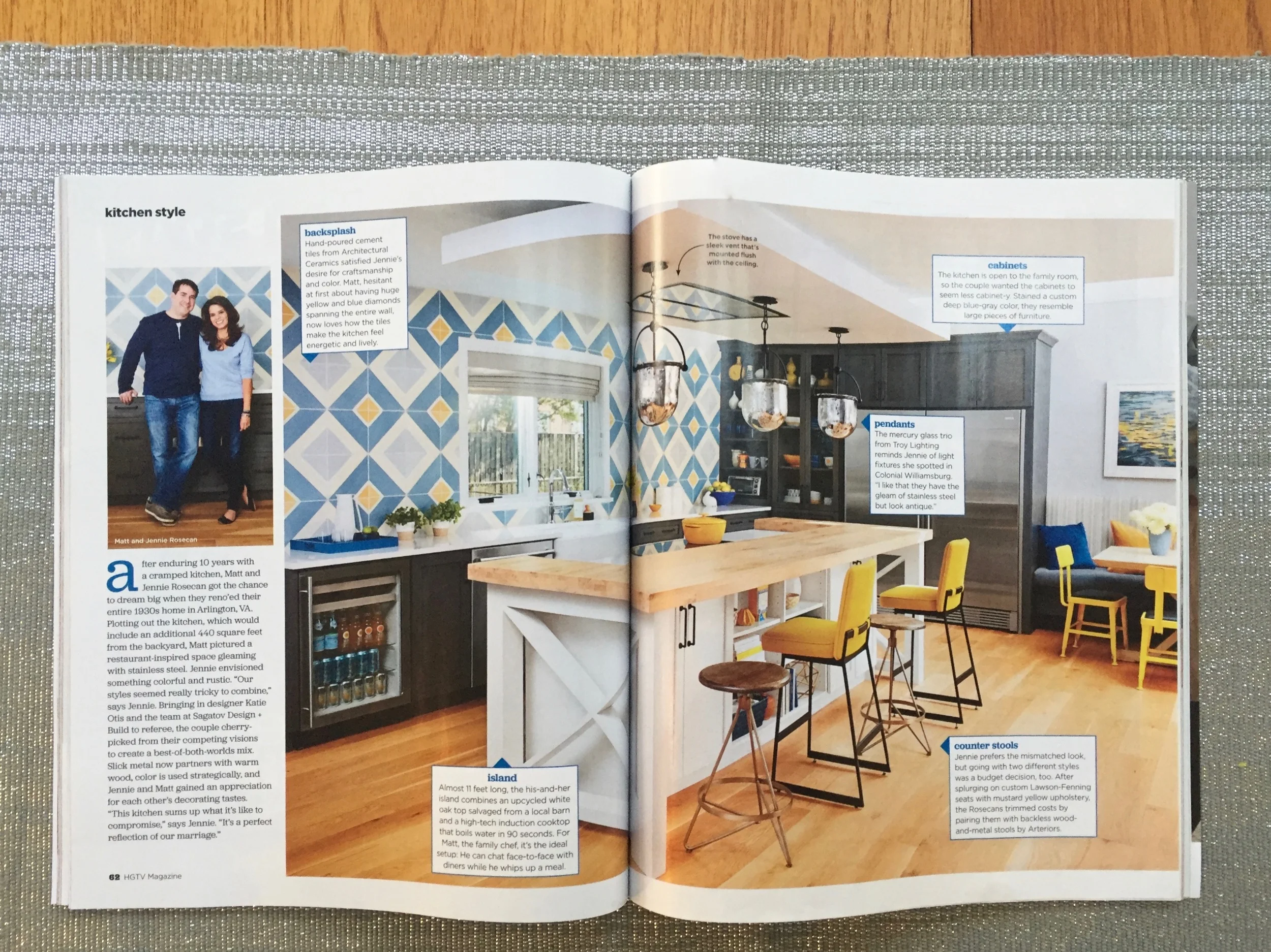 What a pleasant surprise to see my print in print! Convergence I, available on Minted, is featured in the January issue of HGTV Magazine. It really looks great in this remodeled kitchen/dining area and I love how they tied all the colors in the room together - especially that pop of yellow.